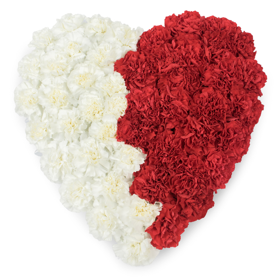 Express your deepest sympathies with our Charming Carnation Arrangement, featuring a stunning mix of white and red carnations. Each flower is meticulously chosen to create a unique and heartfelt display.