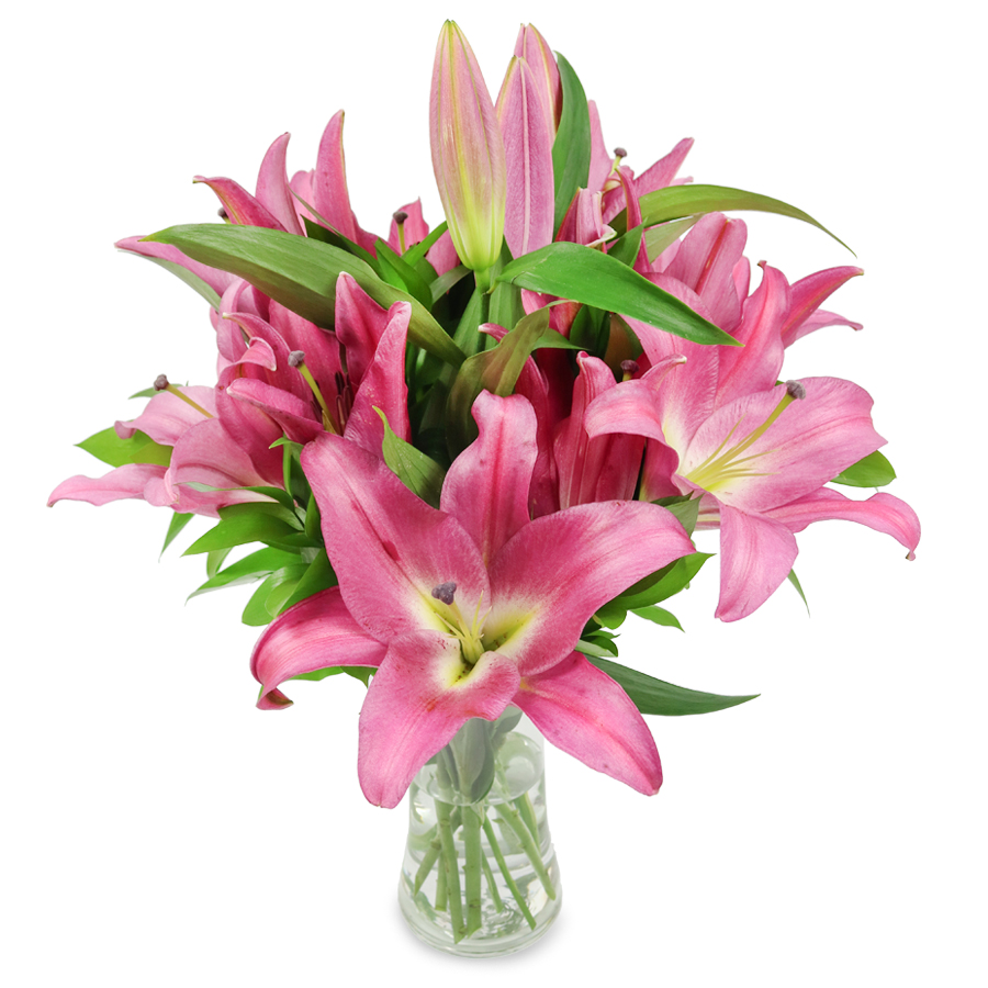 Celebrate love and beauty with our stunning bouquet of pink liliums. Expertly arranged with an eye for detail, each stem is hand-selected for its superior freshness and vibrant color. This bouquet is a perfect expression of luxury and affection, destined to brighten any room and warm hearts.